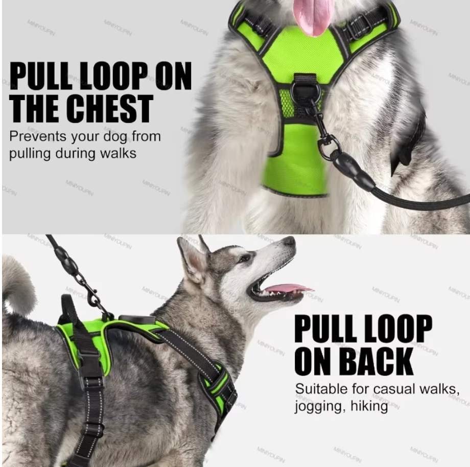 Yes. The no-pull, choke-free design distributes pressure evenly across the chest to reduce strain on the neck. The front leash attachment is ideal for training and discouraging pulling, while the back clip is perfect for relaxed walks.